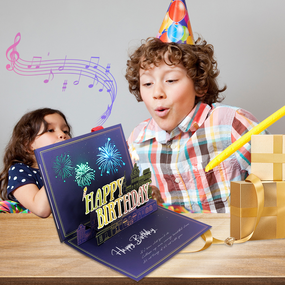 Sản Phẩm chính: Thẻ âm nhạc với ánh sáng, thiệp chúc mừng thủ công, thẻ cắt laser 3D với thiết bị điện tử, hộp nhạc với ánh sáng, túi âm nhạc với ánh sáng
